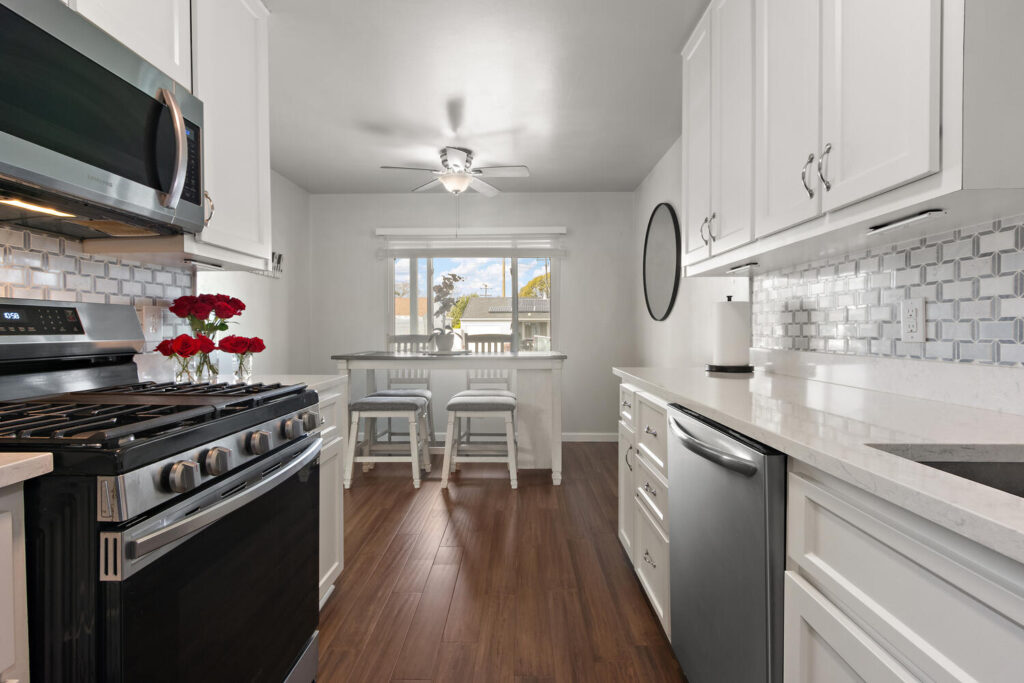 This beautiful East Vallejo home is on a lovely tree lined street. The kitchen was updated less than three years ago. It features stainless steel appliances, subway tile backsplash with quartz counter. It has eat in kitchen area. There are laminate flooring throughout home. Two bedrooms have sliding glass doors that lead out to the large backyard, great for entertaining. Enjoy sitting in backyard under the covered patio that has a fan to cool you off during those warm days. The exterior of the home has been recently painted. You have to love the large front porch to sit and engaged in the sunsets and sunrises. This home is so well kept.